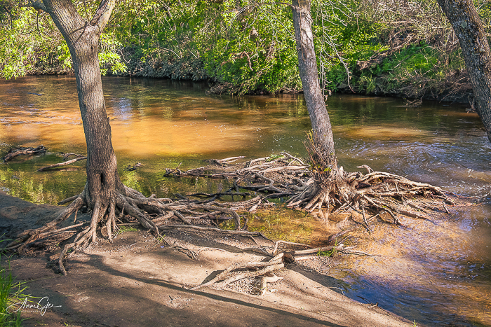 I’m hoping that you can easily see what my subject is. The foreground is the small patch of dirt before the tree roots. The middle, or subject, are the tree roots (because they caught my eye) and the background is the creek and vegetation on the bank. Now I’m thinking that I should have gotten lower and included more of the foreground. What do you think?